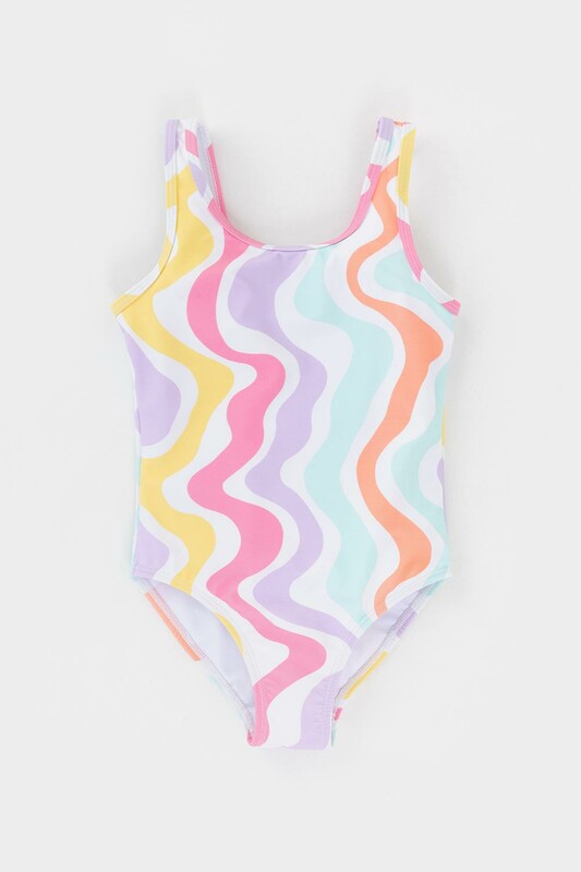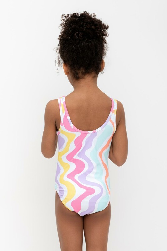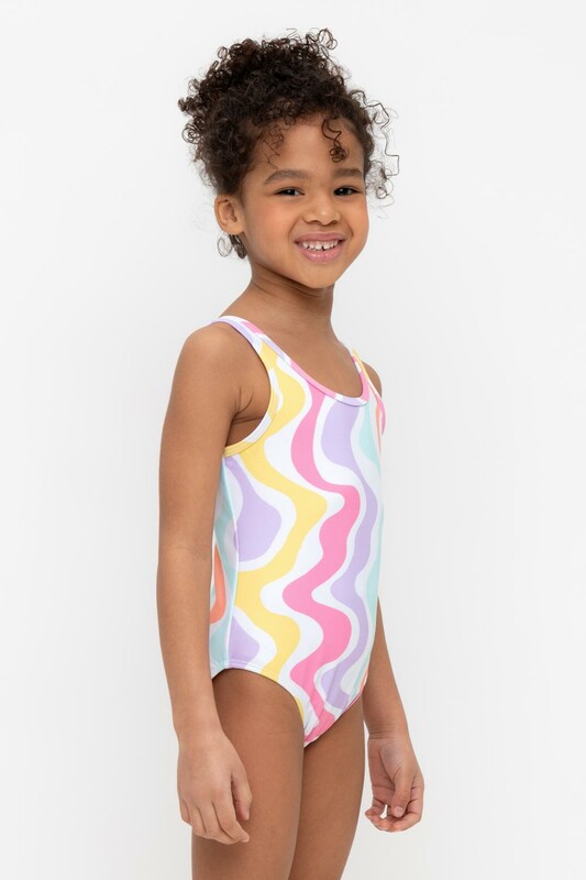 Слитный купальник на лямках для девочки. Оригинальная набивка выполнен из стойких гипоаллергенных красителей.