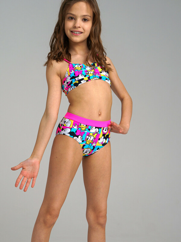 Купальник раздельный с персонажем Disney. Быстросохнущий материал. Благодаря UF-защите, ткань сохраняет первоначальный вид даже при длительном пребывании на солнце. Подходит для плавания в бассейне.