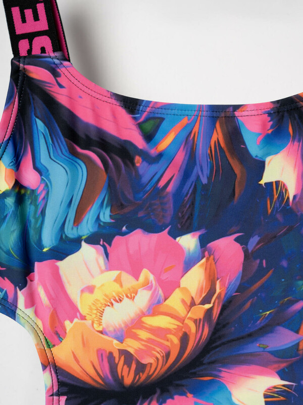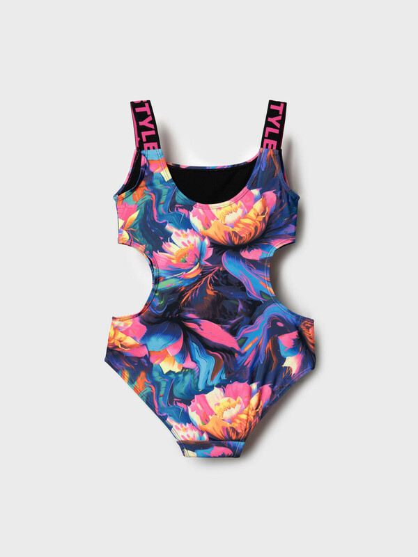 Купальник слитный для девочки подростка. Яркий купальник с оригинальным дизайном — открытые бока и глубокий вырез на спине придают изделию современный и спортивный вид. Модель выполнена из эластичной ткани с насыщенным многоцветным принтом в стиле абстрактных цветов. Бретели украшены жаккардовой тесьмой с надписями. Купальник дополнен мягкой подкладкой. Со 146 размера предусмотрены мягкие съемные чашки. По краям используется эластичная тесьма для комфортной посадки. Благодаря UF-защите, ткань сохраняет первоначальный вид даже при длительном пребывании на солнце. Идеально подойдет для пляжа и бассейна.
