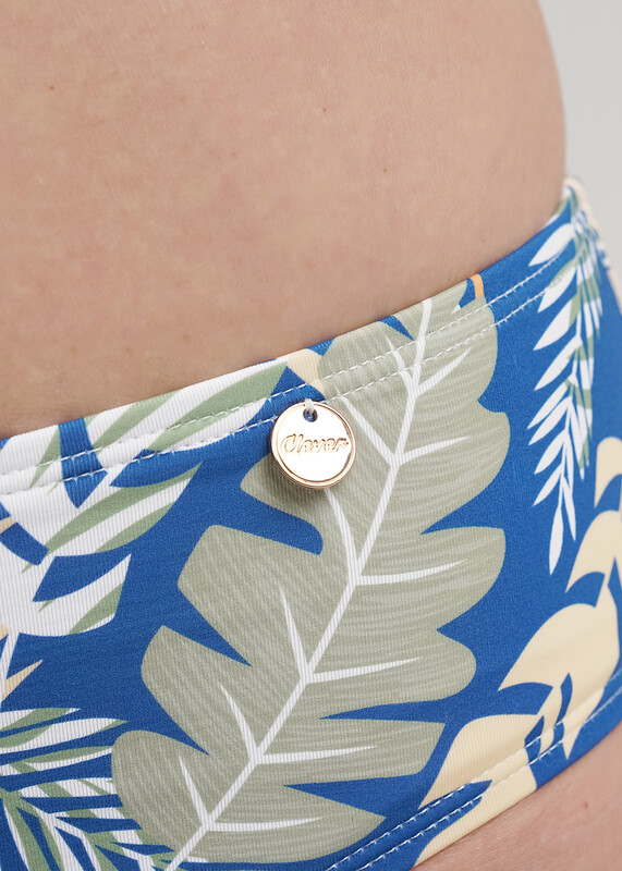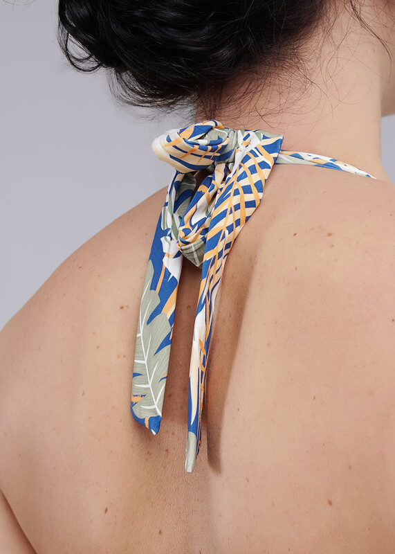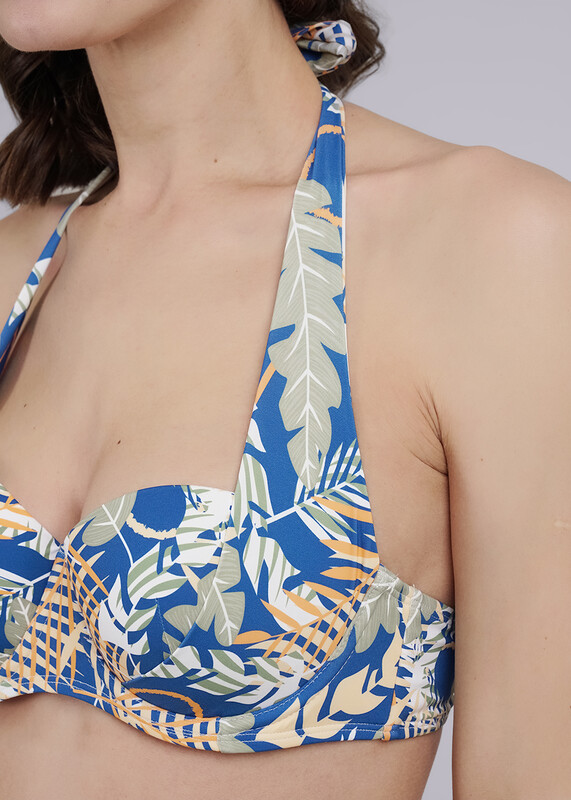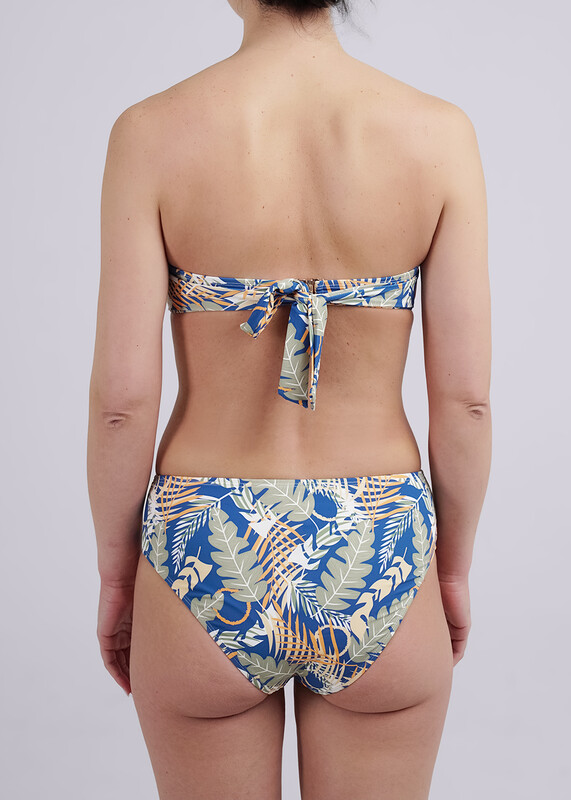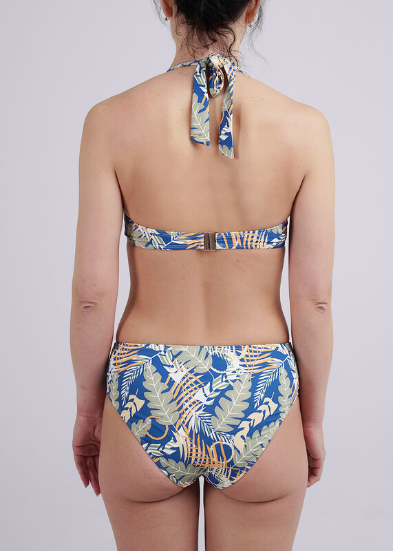 Костюм купальный женский из полиамида с эластаном. Лиф с круглыми чашечками с косточками, с завязками вокруг шеи, на магнитной застежке, трусы бикини на высокой посадке.