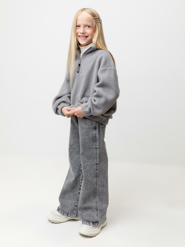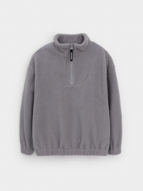 Детская толстовка из флиса. У изделия высокий воротник и застёжка спереди на короткую молнию. Рукава и низ изделия собраны на резинку. Толстовка сохраняет цвет и форму после многократных стирок.