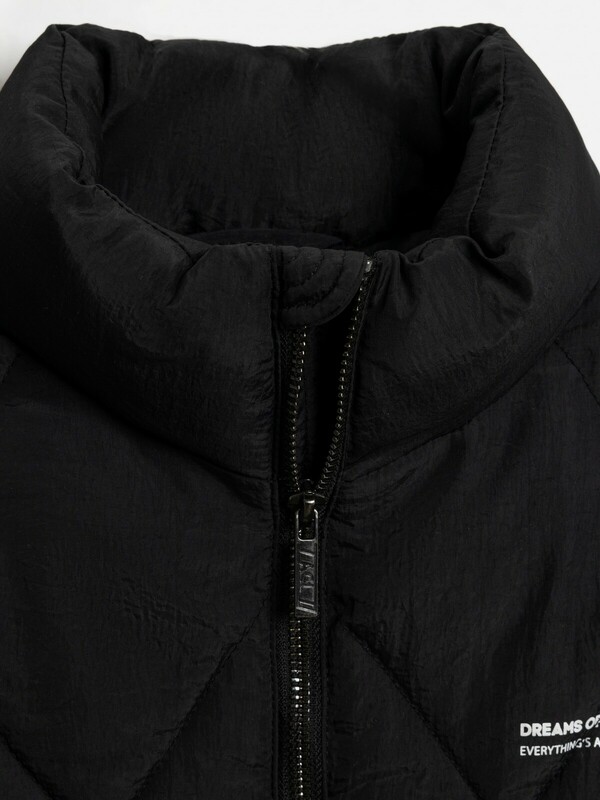 Детская утеплённая стеганая куртка для девочки - прекрасный вариант для прогулок на свежем воздухе в демисезон. Модель выполнена из ткани с жатым эффектом и водоотталкивающей пропиткой, что обеспечивает защиту от дождя и влаги. Подкладка изготовлена из стандартной подкладочной ткани. Вид утеплителя - синтепух, состав утеплителя 100% полиэстер (вес утеплителя 250г 140 размер +15г на каждый размер). Рекомендованный температурный режим от +10 до - 10 градусов. Застёжка на молнию с внутренней ветрозащитной планкой предотвращает проникновение холодного воздуха, а защита от защемления подбородка добавляет комфорта во время ношения. Воротник-стойка надежно закрывает горло, избавляя от необходимости носить шарф. Спереди куртка в черном цвете украшена принтом с надписью "DREAMS OF REALITY EVERYTHINGS A CHOICE" англ. - "Мечты о реальности выбор каждого", которая придает стильный вид. Боковые карманы идеально подойдут для того, чтобы согреть руки. Изнутри предусмотрена утяжка по низу изделия для регулировки посадки и предотвращения задувания холодного воздуха. Трикотажная манжета на рукавах обеспечивает дополнительную защиту от ветра. Рост модели на фото 144. Размер модели на фото 140.