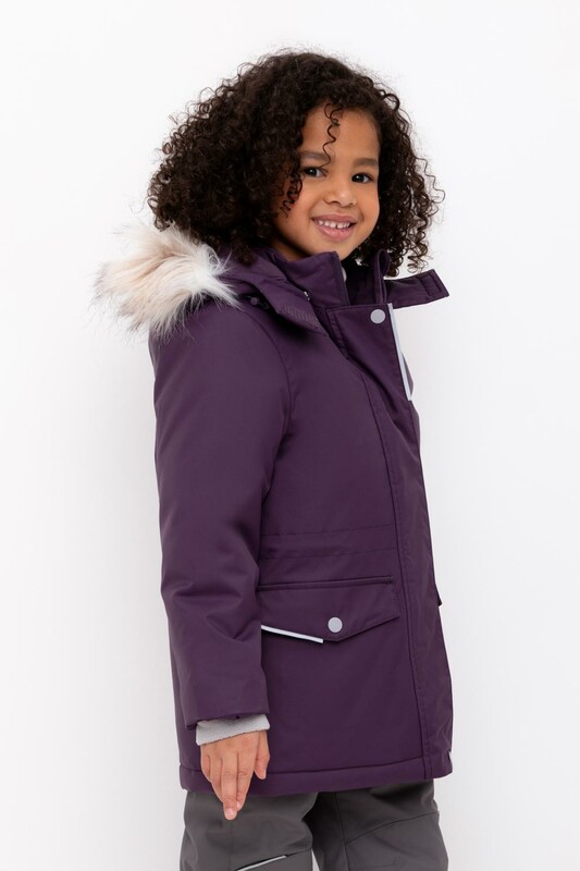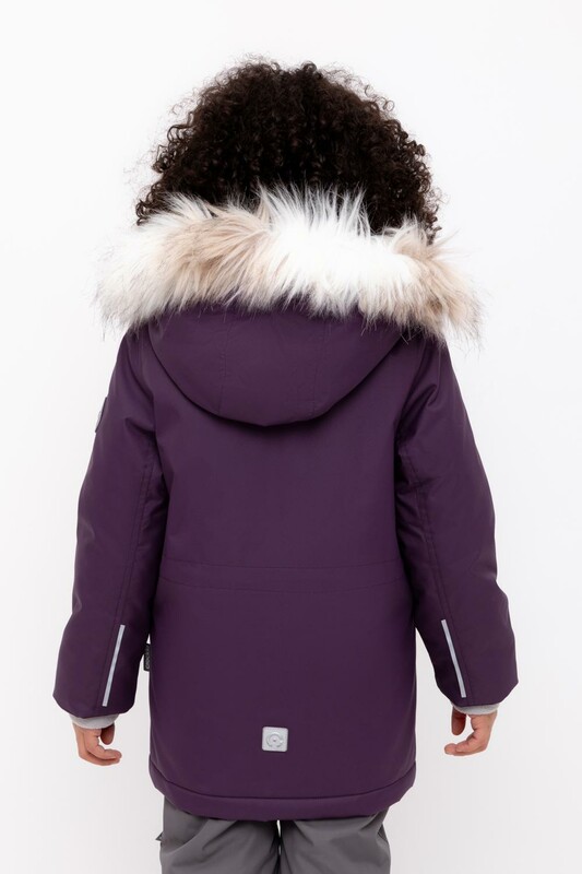 • Съемный капюшон на липучках с отстегивающимся искусственным мехом и утяжкой со стопперами по бокам капюшона.