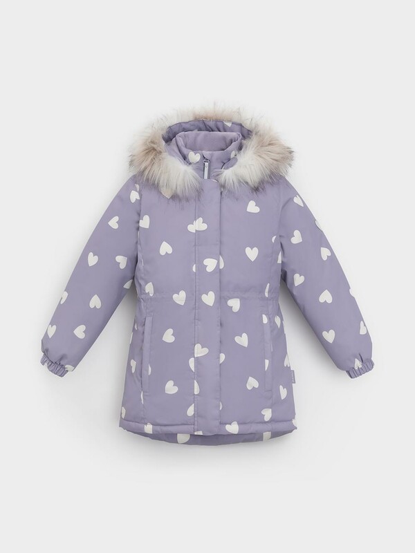 Зимняя куртка для девочки с утеплителем SEE®: 300 г/м2. Выполнена из мембранной ткани с дополнительной тефлоновой обработкой, которая предохраняет изделие от загрязнений и отталкивает влагу. Подклад выполнен из 100% полиэстера Tricot. Куртка застёгивается на молнию, предусмотрена защита подбородка. Съёмный капюшон на кнопках и липучках имеет отстёгивающийся искусственный мех. На рукавах эластичные манжеты на резинке. По бокам два кармана на молниях. По талии эластичная утяжка со стопперами для регулировки ширины куртки. Во всех изделиях верхнего ассортимента для безопасности ребёнка предусмотрены светоотражающие элементы.