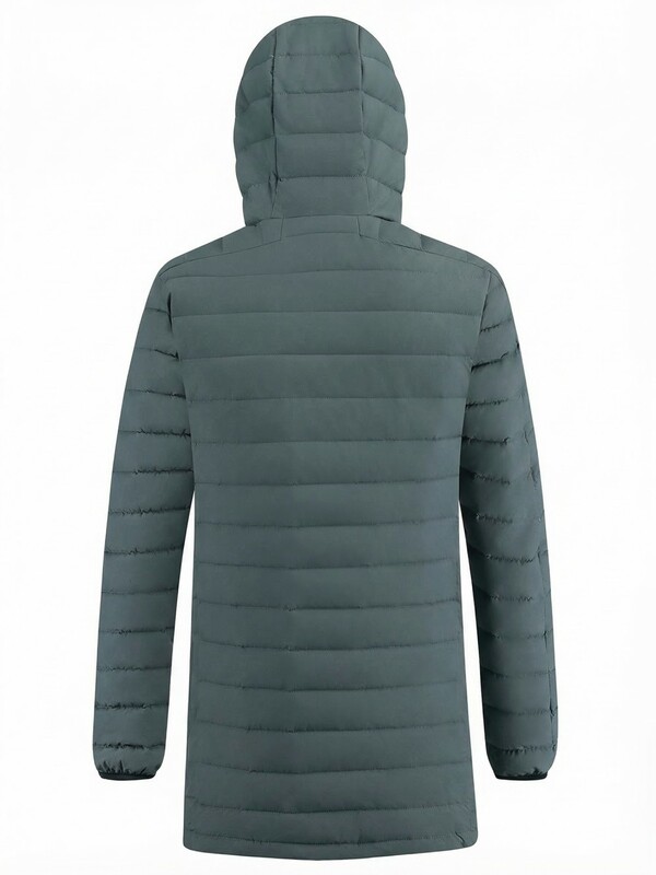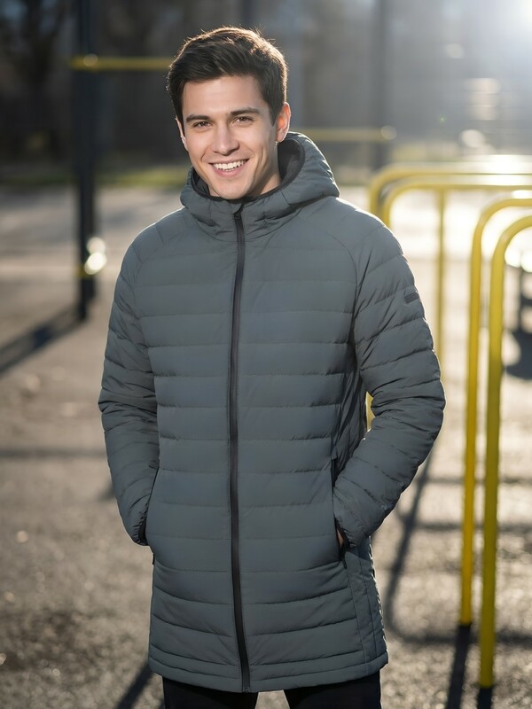 Удлинённый силуэт обеспечивает дополнительную защиту от ветра и создаёт ощущение уюта и защищённости. Капюшон помогает сохранить тепло и защищает от непогоды, делая куртку ещё более практичной для повседневной носки.