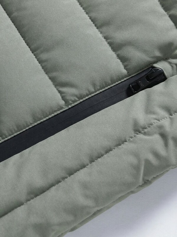 Верх куртки выполнен из прочной водоотталкивающей ткани, которая защищает от ветра и лёгких осадков. Материал практичен в использовании, сохраняет аккуратный внешний вид и обеспечивает комфорт даже при длительной носке. Стёганая конструкция равномерно распределяет утепление, благодаря чему куртка остаётся лёгкой, но при этом хорошо удерживает тепло.