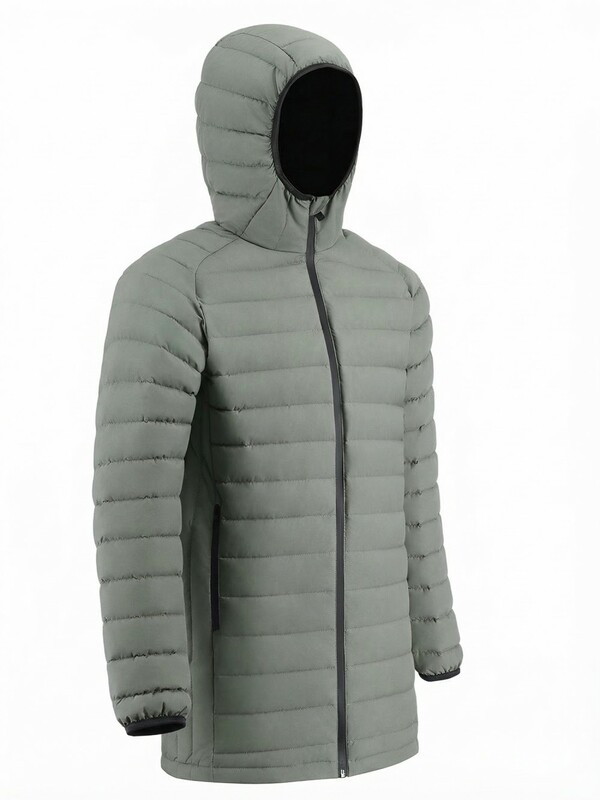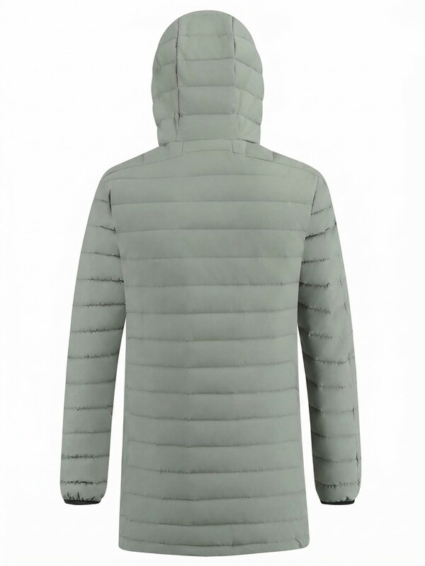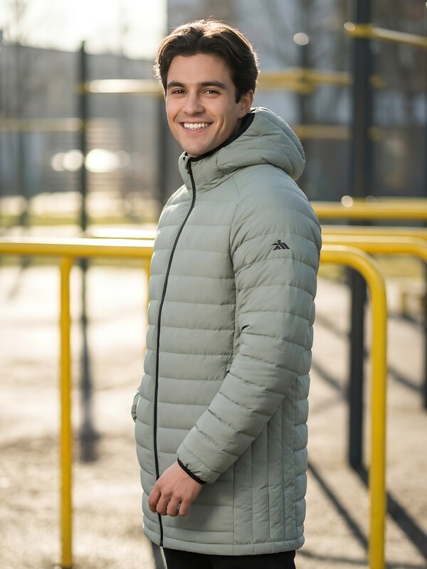 Удлинённый силуэт обеспечивает дополнительную защиту от ветра и создаёт ощущение уюта и защищённости. Капюшон помогает сохранить тепло и защищает от непогоды, делая куртку ещё более практичной для повседневной носки.