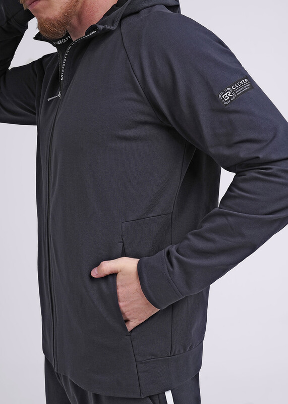 Мужская куртка из футера на молнии. Изделие дополнено 2-мя вместительными карманами на молнии, имиджевой фурнитурой и дизайнерским принтом. Комфортный и практичный вариант для активных мужчин.