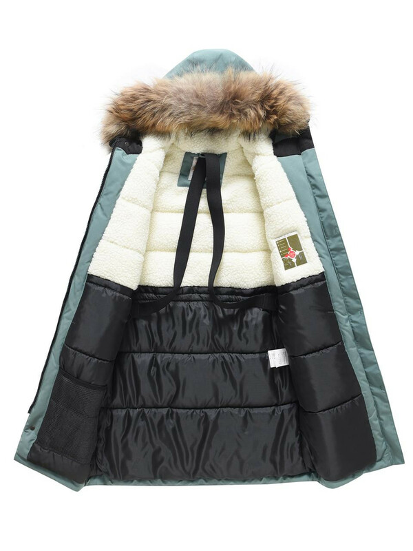 - Съемная меховая опушка: Из натурального меха, добавляет стильный акцент и дополнительное тепло.