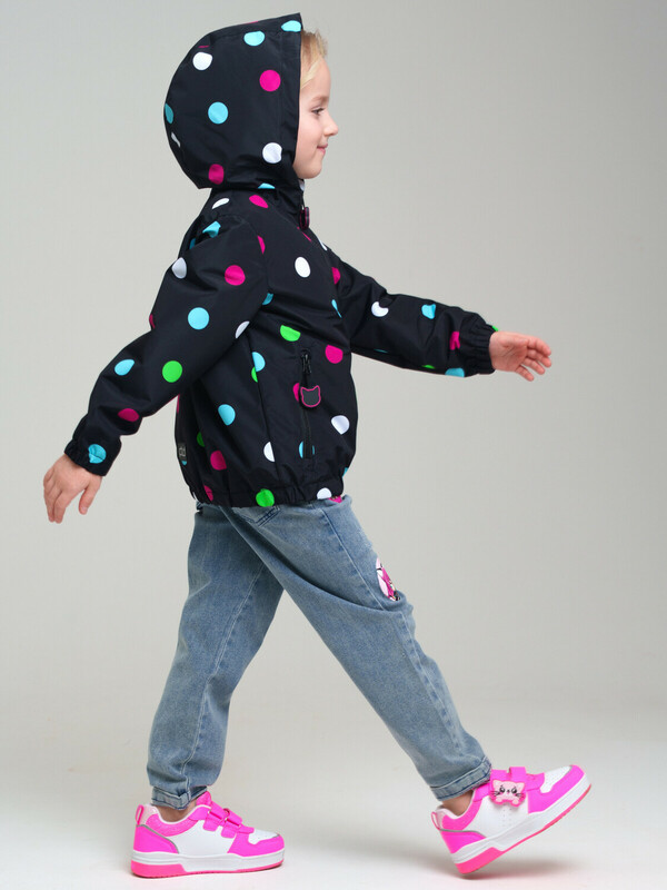 Ветровка детская на трикотажной подкладке для девочки. Мембранное покрытие 5000х5000. Температурный режим до +10°С*. Линия температурного режима X-LIGHT. Идеально подходит для весны и теплой осени. Внутренняя ветрозащитная планка. Манжеты и низ изделия на резинке. Два боковых кармана на молнии. Внутренний карман на липучке. Несъемный капюшон с резинкой надежно защищает голову ребенка от ветра и осадков.