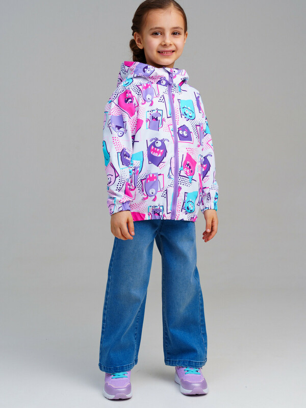 Ветровка детская на трикотажной подкладке для девочки. Мембранное покрытие 5000х5000. Температурный режим до +10°С*. Линия температурного режима X-LIGHT. Идеально подходит для весны и теплой осени. Внутренняя ветрозащитная планка. Манжеты и низ изделия на резинке. Два боковых кармана. Внутренний карман на липучке. Несъемный капюшон с резинкой надежно защищает голову ребенка от ветра и осадков.