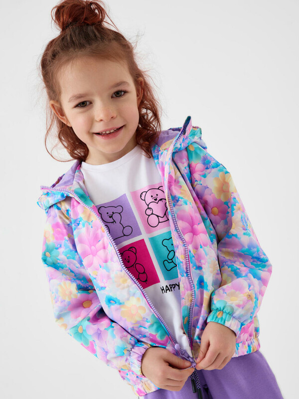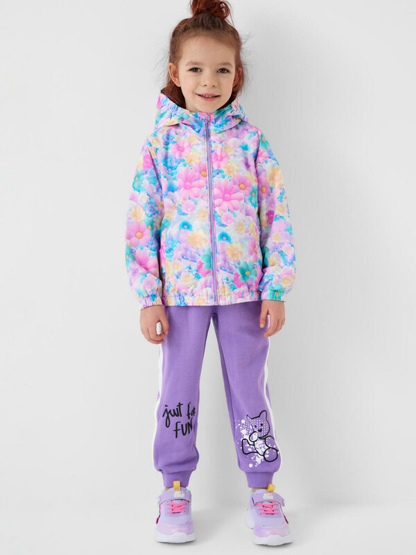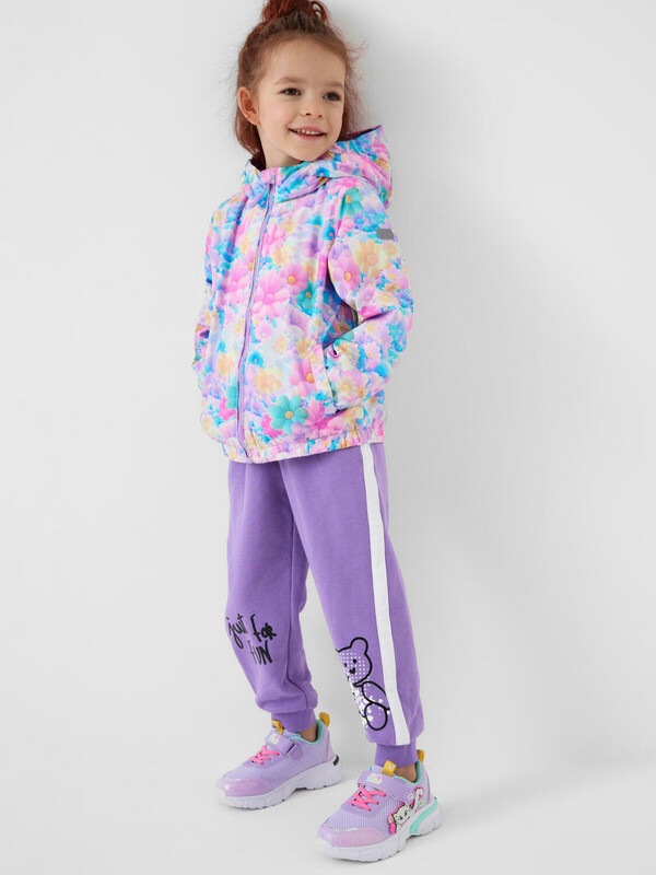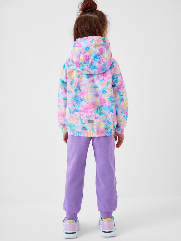 Детская ветровка для девочки. Температурный режим от +20С до +10С. Ткань с ветрозащитным и водоотталкивающим покрытием. Внутри трикотажная подкладка. Капюшон несъемный, на резинке. Два боковых кармана на липучке. Внутренний карман на липучке. Манжеты и низ собраны на резинку, что защищает от ветра. Светоотражающая нашивка для безопасности в темное время суток. Подходит для весенне-осеннего сезона.