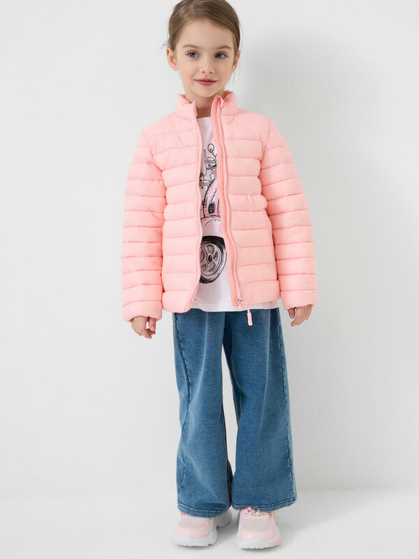 Лёгкая детская куртка для девочки. Температурный режим от +15 до 0С. Ткань с ветрозащитным и водоотталкивающим покрытием. Внутри гладкая подкладка. Воротник аккуратный, стойка. Два боковых кармана. Манжеты на резинке. Подходит для тёплой весны и осени.