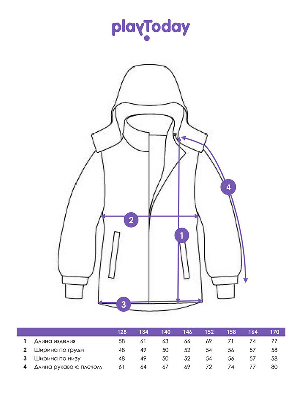 *Пожалуйста, обратите внимание, что указанный температурный режим является приблизительным и зависит от многих факторов, таких как возраст, физическое состояние, уровень активности ребенка и количество слоев одежды. Время, проведенное на открытом воздухе, и погодные условия, такие как холодный ветер, могут повлиять на тепловые характеристики изделия. Убедитесь, что защищены от холода голова, руки и ноги.