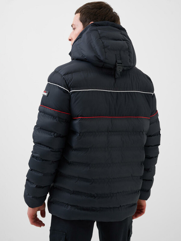 Мужская демисезонная куртка. Температурный режим от +15С до 0С. Ткань с ветрозащитным и водоотталкивающим покрытием. Внутри гладкая подкладка. Капюшон несъемный, с регулировкой стопперами. Два удобных боковых кармана на молнии. Внутренний карман на липучке. Трикотажные манжеты. Низ изделия на резинке.