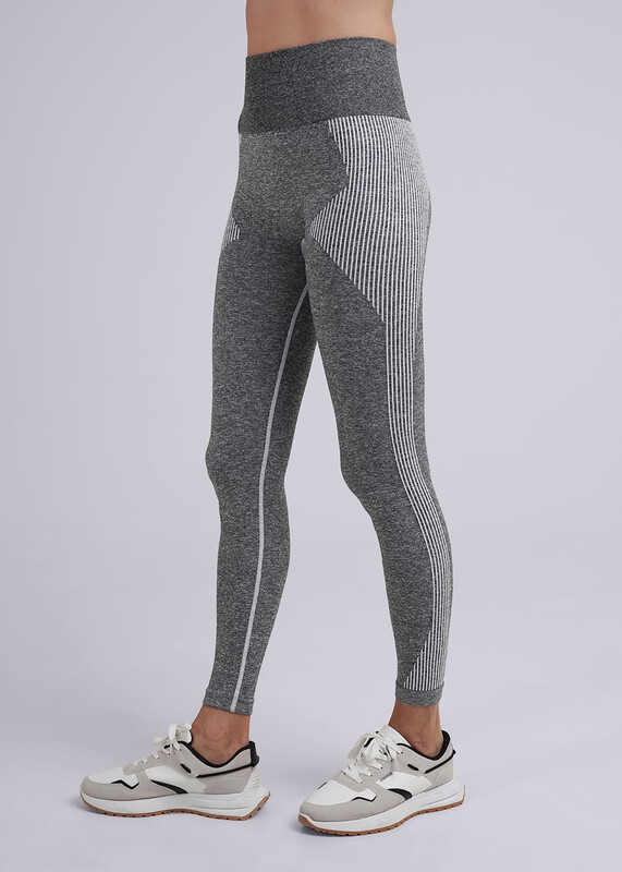 Женские лосины с высокой посадкой. По талии широкая резинка, обеспечивающая комфортную посадку. По бокам декоротивные вставки в рубчик.