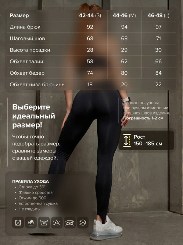 Анатомический крой визуально вытягивает линию ног и формирует аккуратный силуэт в зоне бёдер. Штрипки обеспечивают дополнительную фиксацию по стопе, предотвращают смещение ткани и придают модели выразительный, профессиональный характер.