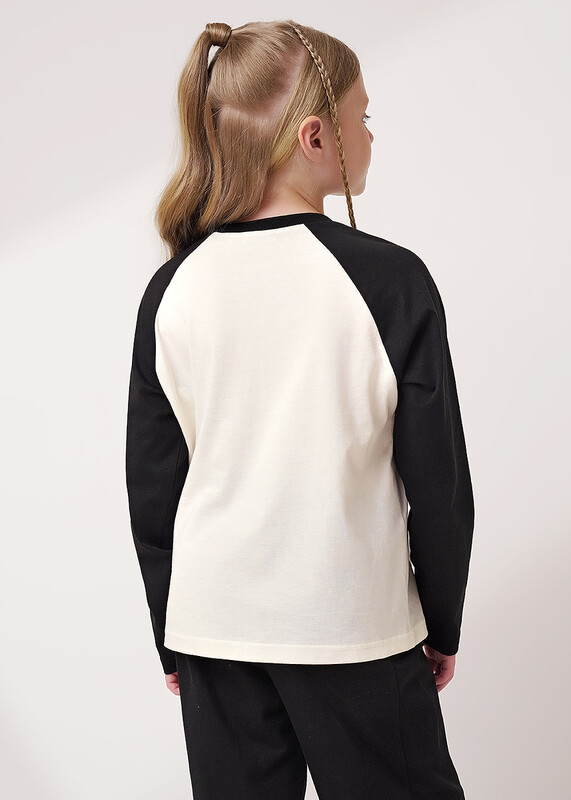 Стильный лонгслив из хлопкового трикотажа- то, что нужно для твоего классного лука! Покрой рукава реглан, контрастная горловина и рукава, стильный дизайнерский принт- всё для твоего отличного настроения!