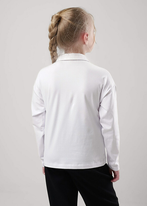 Базовое поло является неотъемлемой частью школьного гардероба! Модель с отложным воротником из поплина и планкой на пуговицах. Поло выполнено из хлопкового полотна с добавленем эластана. Создавай классные повседневные или школьные образы и будь в тренде!