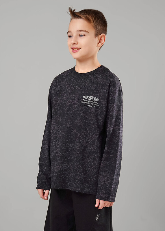 Стильный лонгслив с эффектом варки- мастхэв этого сезона! Комфортная посадка по фигуре, эластичная горловина и манжеты. Стильный принт спереди дополняет модель. Создавай смелые образы, сочетая лонгслив с брюками или шортами из новой коллекции !