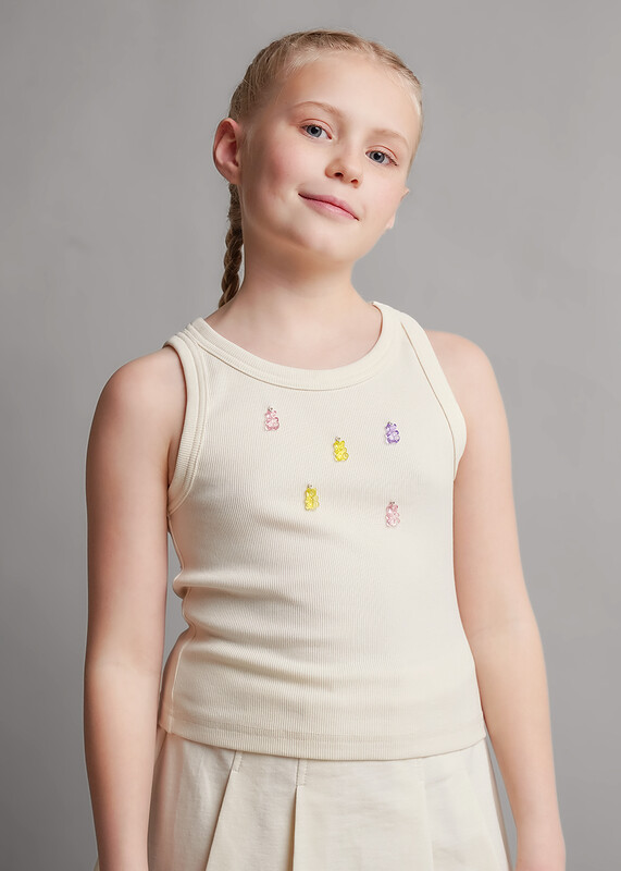 Базовая майка из трикотажного полотна в рубчик станет отличным дополнением вашего гардероба. Яркий декор сделает ваш образ стильным.