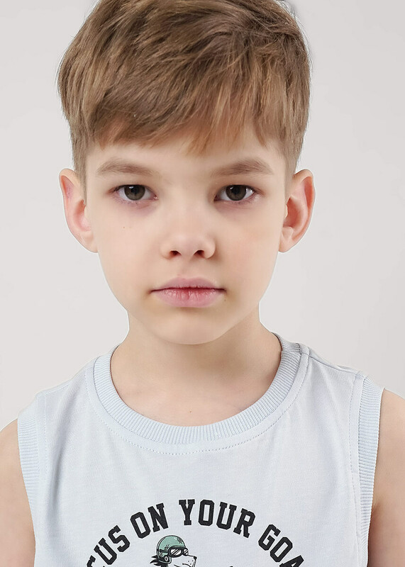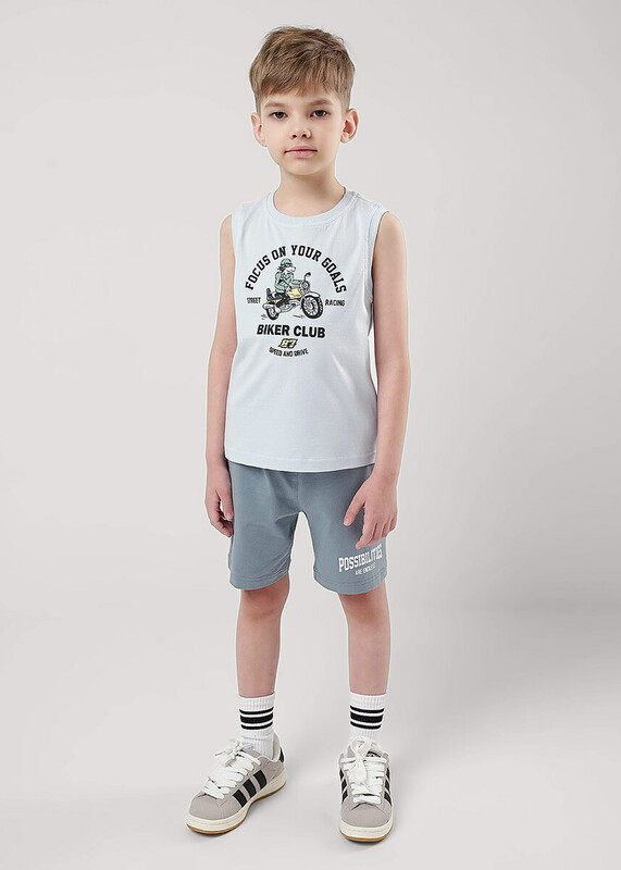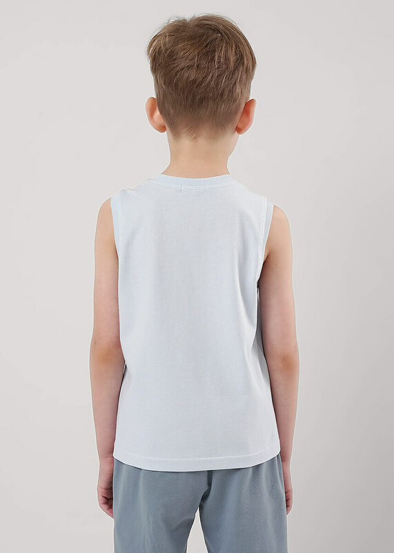 Летняя майка из хлопка. Горловина и проймы окантованы эластичным полотном. По переду игровой принт.