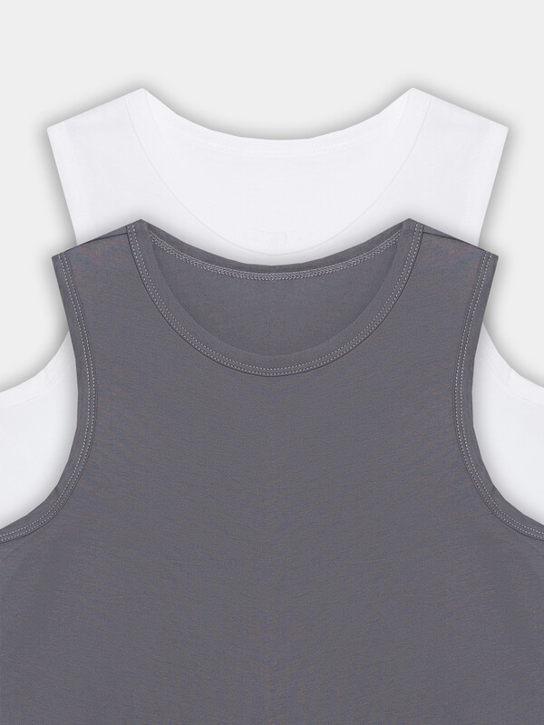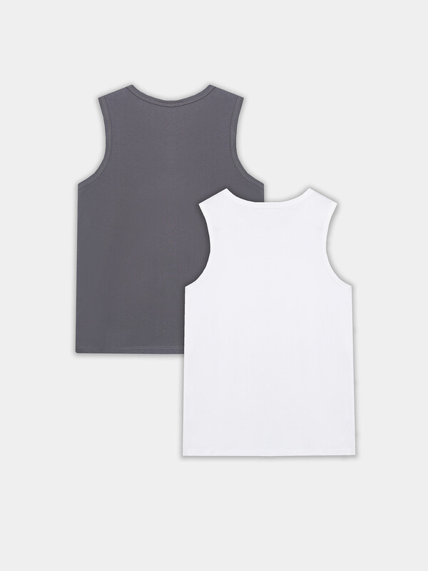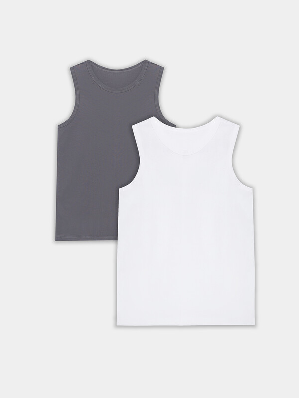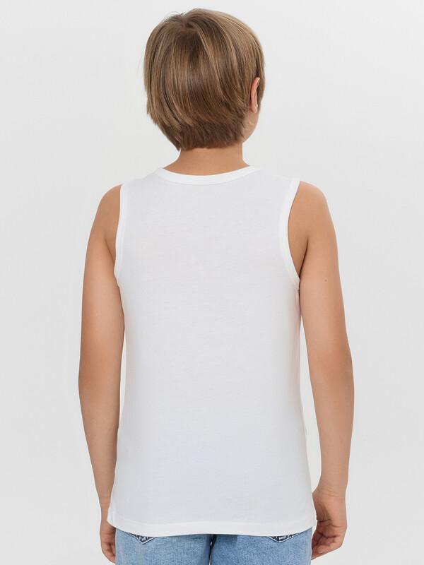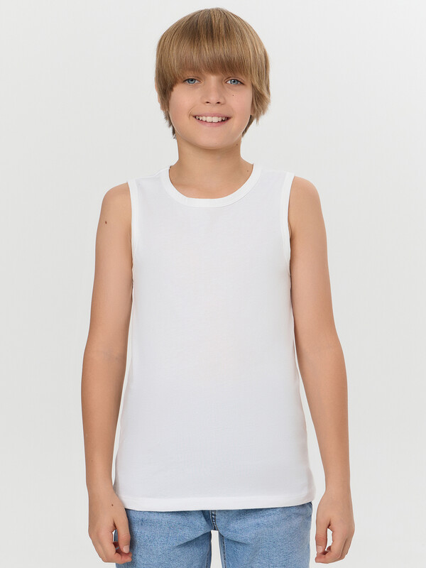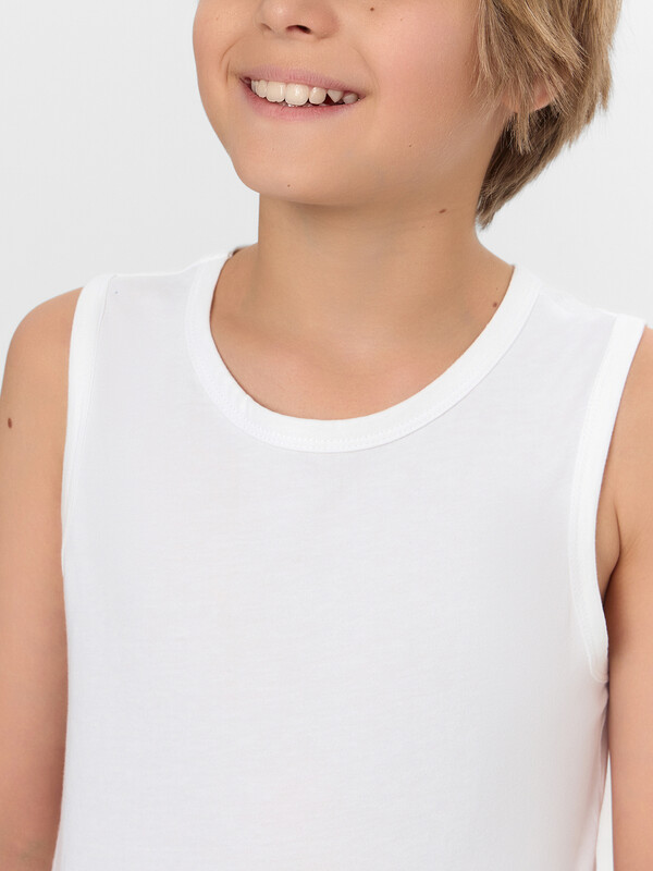 Набор из двух маек полуприлегающего силуэта из хлопковой трикотажной кулирки. Длина до середины бедер. Горловина круглая, окантована мягкой бейкой. Нижний срез обработан плоским швом. Комфортная классика для вашего мальчика!