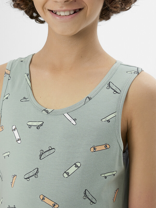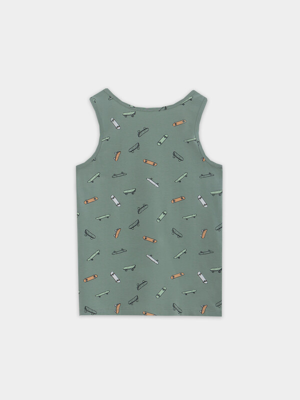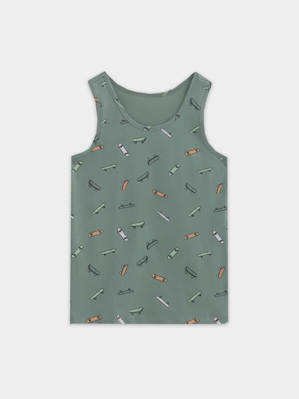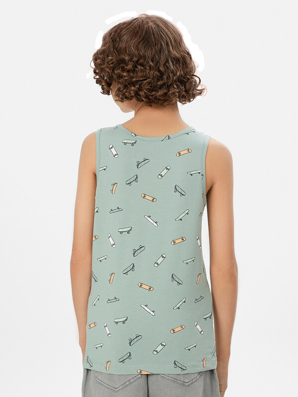 Комфортная хлопковая майка из трикотажной кулирки. Силуэт полуприлегающий, длина до середины бедер. Горловина и пройма расширены и углублены, а также обработаны мягкой бейкой. Именно такую майку вы искали для своего мальчика!