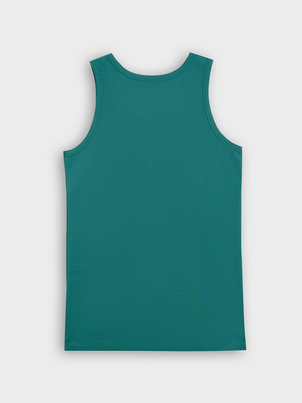 Комфортная хлопковая майка из трикотажной кулирки. Силуэт полуприлегающий, длина до середины бедер. Горловина и пройма расширены и углублены, а также обработаны мягкой бейкой. Именно такую майку вы искали для своего мальчика!