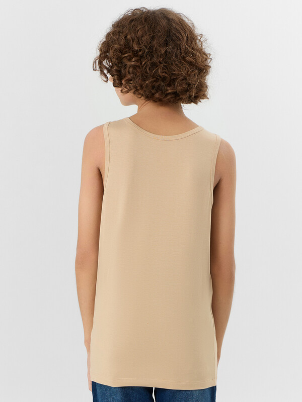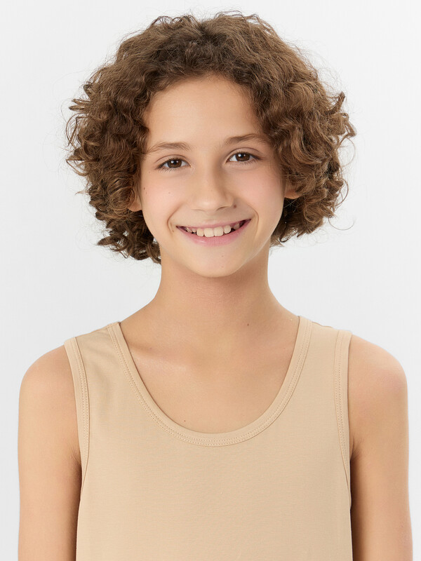 Комфортная хлопковая майка из трикотажной кулирки. Силуэт полуприлегающий, длина до середины бедер. Горловина и пройма расширены и углублены, а также обработаны мягкой бейкой. Именно такую майку вы искали для своего мальчика!