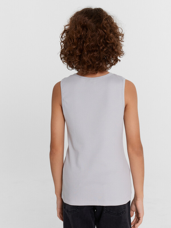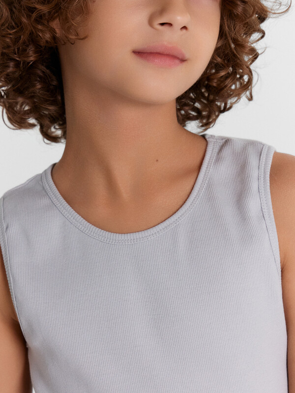 Стильная и комфортная майка из трикотажной рибаны. В составе преодладает натуральный хлопок. Длина до середины бедер. Силуэт прилегающий. Горловина круглая, окантована бейкой. Идеально для вашего мальчика!