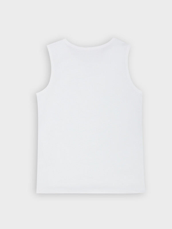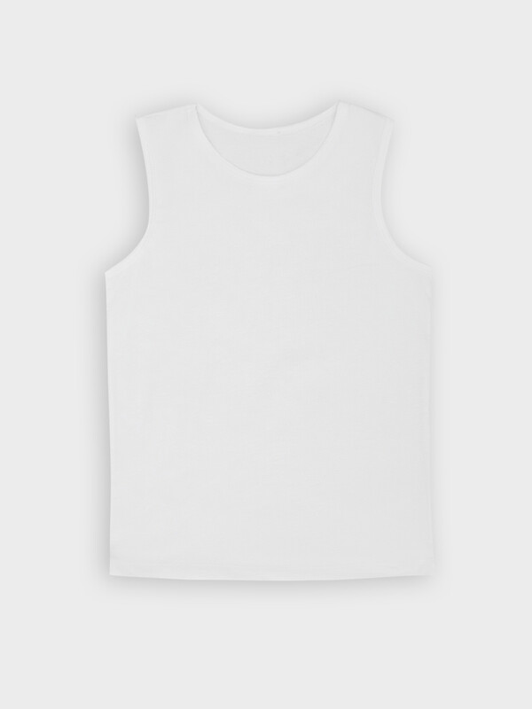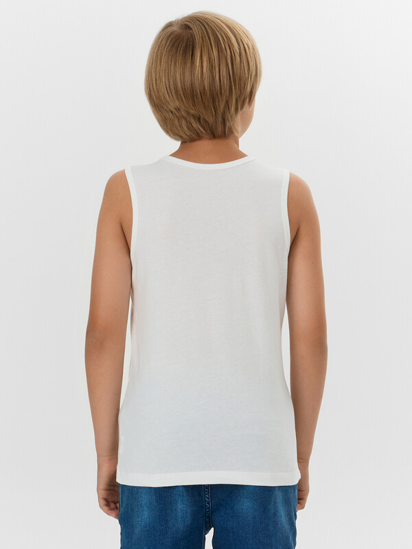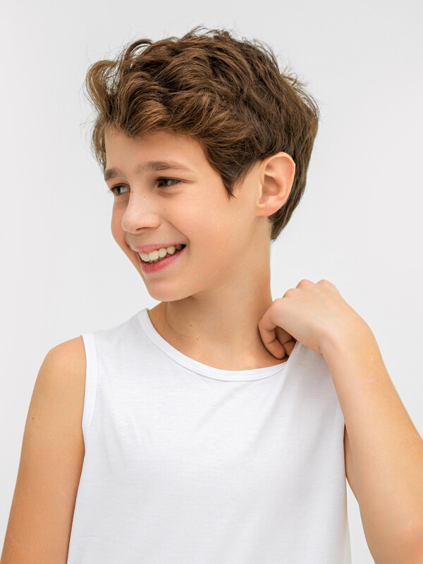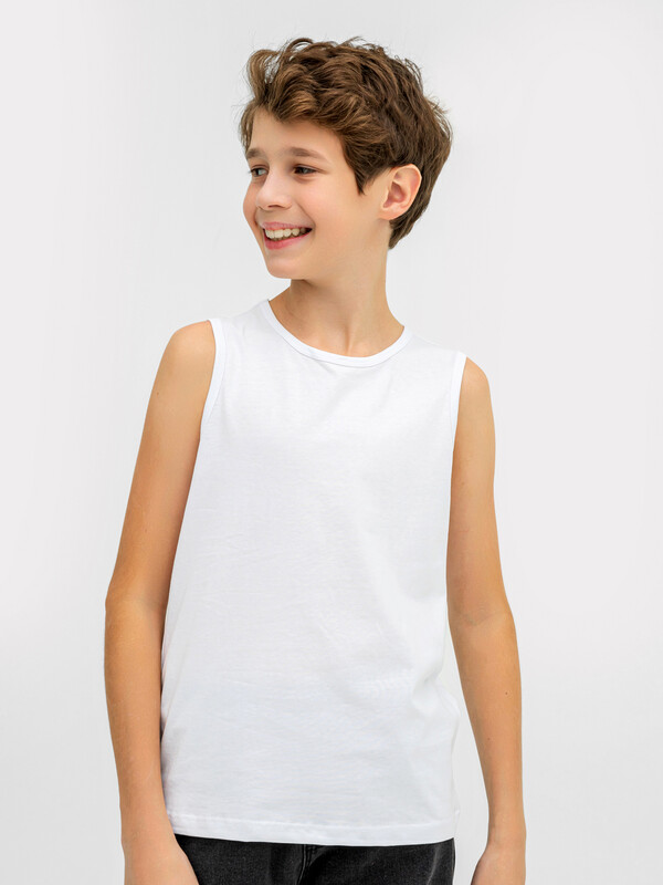 Майка полуприлегающего силуэта из хлопковой трикотажной кулирки. Длина до середины бедер. Горловина круглая, окантована мягкой бейкой. Нижний срез обработан плоским швом. Комфортная классика для вашего мальчика!