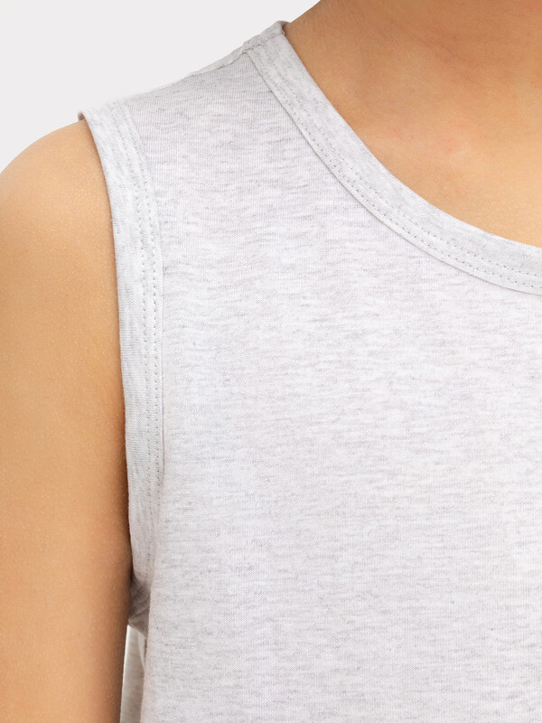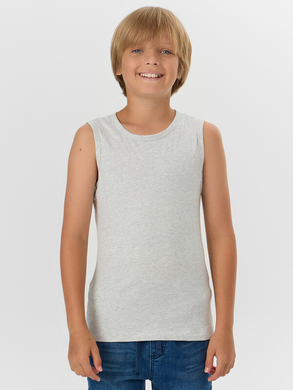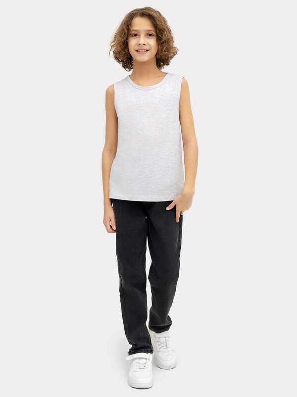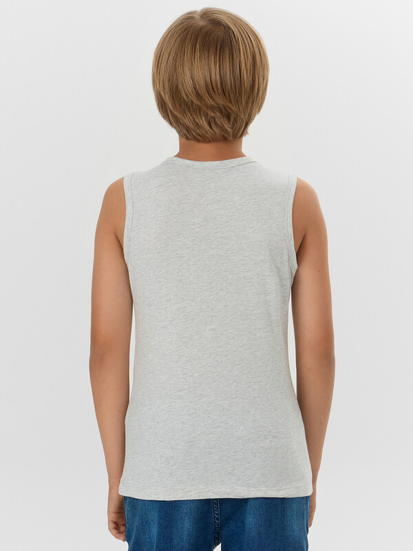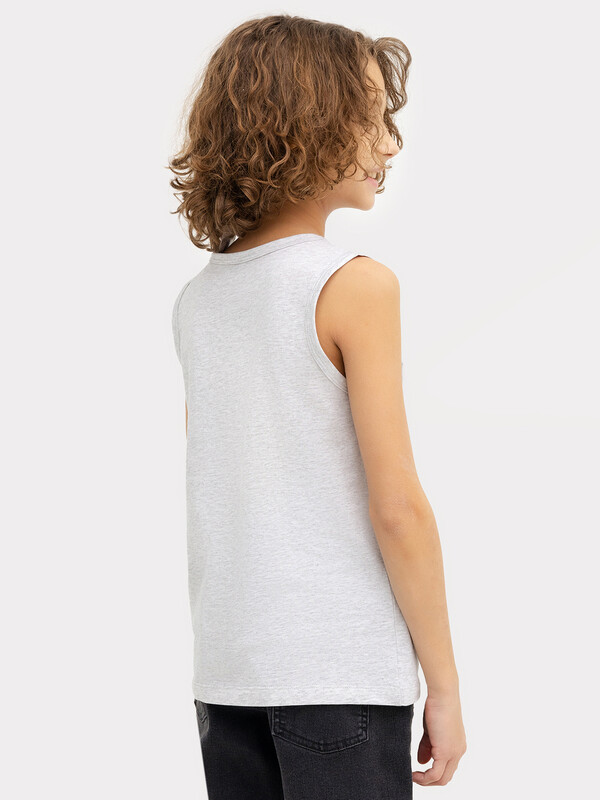 Майка полуприлегающего силуэта из хлопковой трикотажной кулирки. Длина до середины бедер. Горловина круглая, окантована мягкой бейкой. Нижний срез обработан плоским швом. Комфортная классика для вашего мальчика!