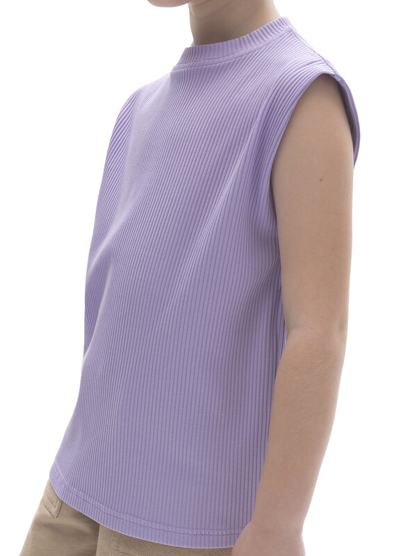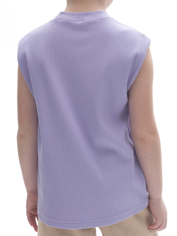 Удлинённая майка из модной ткани в рубчик для мальчика. В составе ткани преобладают хлопок и вискоза — изделие дышит, приятно на ощупь и комфортно для кожи ребёнка. Эластан помогает сохранять форму. Оригинальная обработка проймы: плечо немного удлинено, подогнуто внутрь и закреплено в плечевом и боковом швах — актуальный летний тренд. Майка прямого свободного силуэта не сковывает движений и подойдёт мальчикам с разной фигурой. Отличный выбор для летнего отдыха!