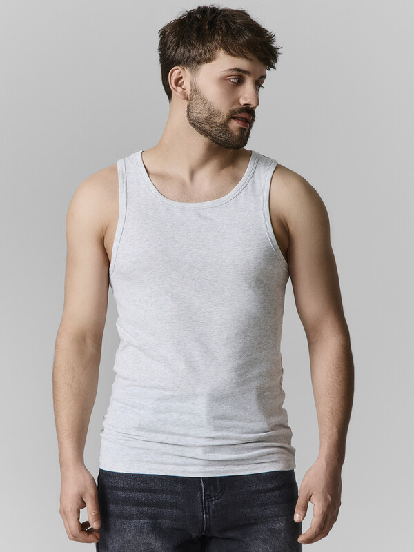 Майка мужская выполнена из трикотажного полотна кулирка 95% хлопок; 5% эластан, 155 г; 180см.