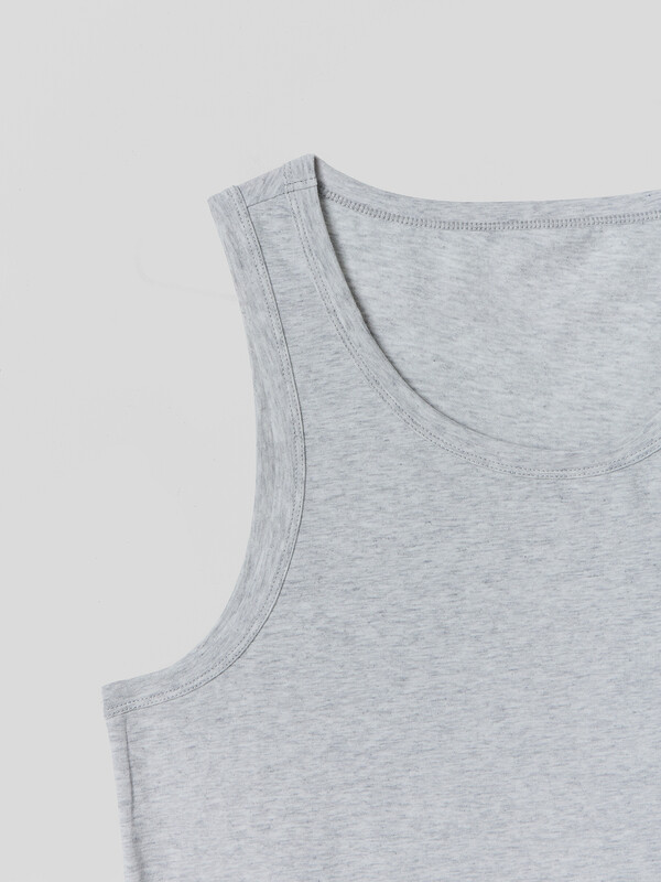 Майка облегающего силуэта, длиной до линии бедер. Горловина округлой формы. Горловина и проймы окантованы бейкой из основного полотна. Нижний срез застрочен швом в подгибку, на двухигольной плоскошовной машине.