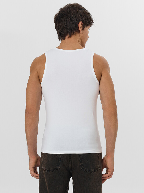 Облегающий силуэт до линии бедер обеспечивает аккуратную посадку без складок. Круглая горловина и проймы обработаны мягкой окантовкой, которая предотвращает натирание. Низ майки аккуратно подогнут — это продлевает срок службы и сохраняет опрятный вид.