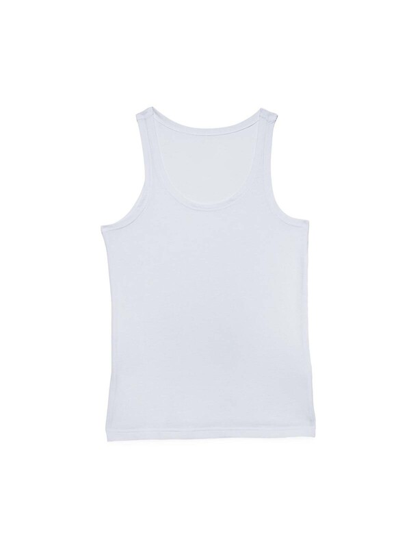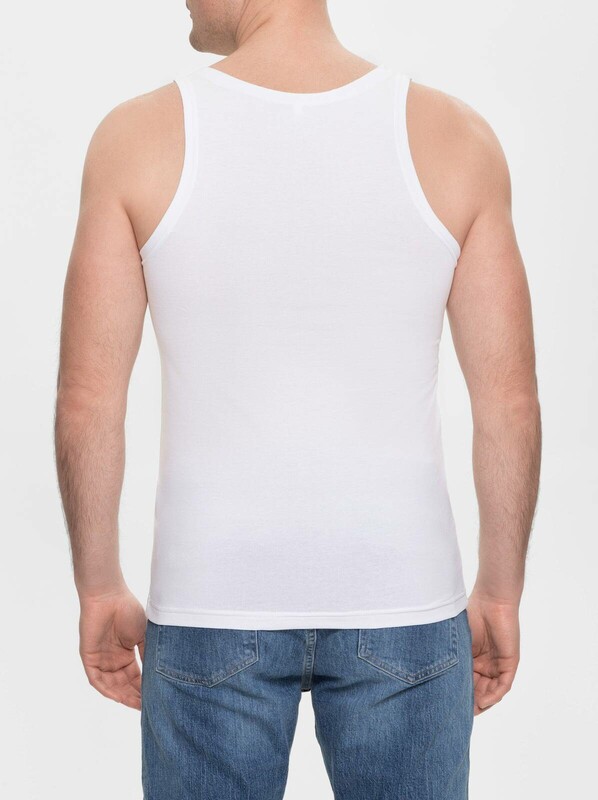 Майка мужская с зауженными шлейками, с овальным глубоким вырезом горловины. Прямой силуэт, стандартной длины - классическая модель.
