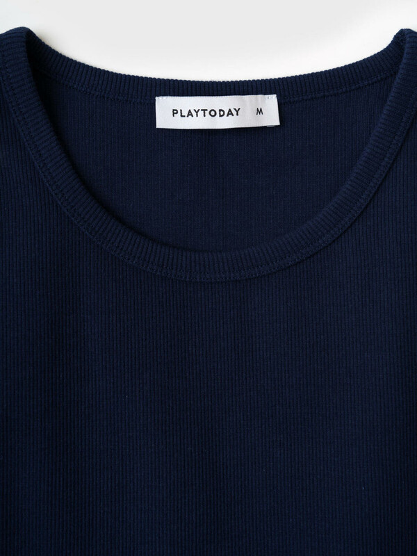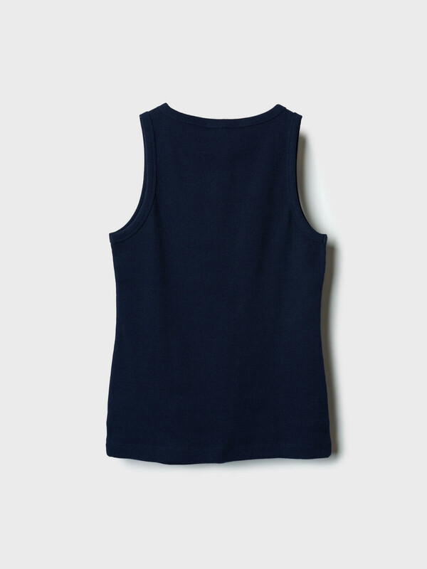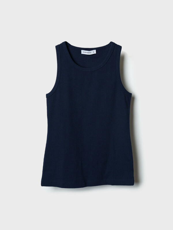 Женская базовая майка. Модель прямого силуэта, без рукавов, с круглой горловиной. Выполнена из хлопкового трикотажа в рубчик.