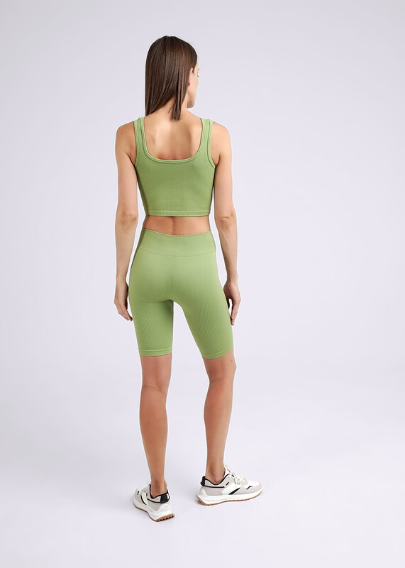 Женская укороченная майка из микрофибры в рубчик. Майка на широкой бретели, с глубоким круглым вырезом.