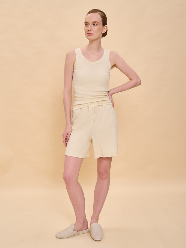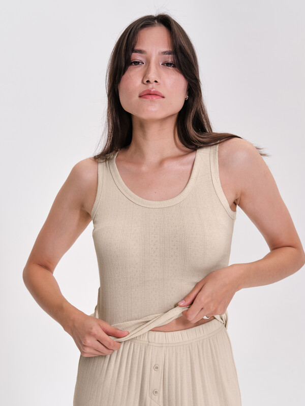 Майка на широких бретелях женская изготовлена из мягкого 100% хлопка «пуантель» с мельчайшим геометрическим узором, напоминающим кружево. Майка бельевая женская небольшого объёма подходит для любой фигуры. Бретели обработаны широким пайпингом — смотрится аккуратно и не растягивается. Майка однотонная женская лаконичного дизайна, без принта. Её можно носить в качестве среднего слоя одежды под свитер, толстовку. Майка бельевая идеально подходит для расслабленных домашних образов. Модель представлена в универсальных цветах, её легко комбинировать с различными брюками, шортами и юбками. Майка ажурная женская хорошо сочетается с брюками в таком же стиле, в ассортименте представлены брюки в тон. Помните о правильном уходе за изделием: рекомендуется стирать при температуре не выше 30 °C, без предварительного замачивания, с изнанки. Это поможет сохранить качество и цвет футболки на длительное время.