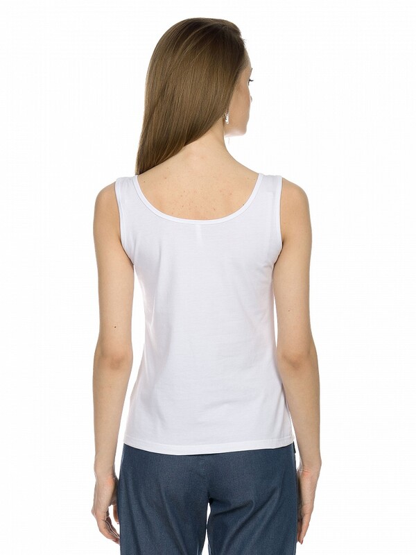 Майка женская. Майка небольшого объема с красивой линией горловины, напоминающей каре. Стойкий и мягкий принт выполнен с добавлением неоновых красок, глиттера и глянца в шрифте, декорирован стразами. Перевод Еще один день в раю.