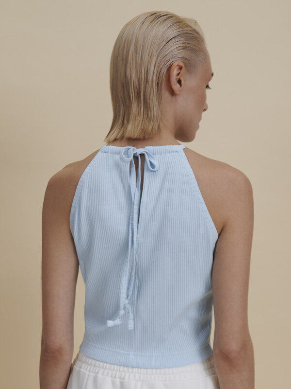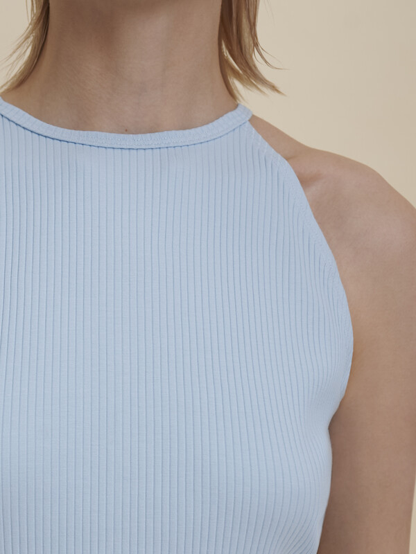 Укороченный топ халтер из модной ткани в рубчик для женщин. По горловине майки завязка, с её помощью можно регулировать высоту горловины и посадку топа. Топ-халтер – стильный мастхэв этого лета. Модель подчёркивают красоту открытых плеч, рук и спины. Вырез под горло даёт дополнительный акцент на плечи и удлиняет шею. Для самых модных девушек. В составе ткани преобладают хлопок и вискоза – майка мягкая, приятная на ощупь и комфортная для кожи. Эластан помогает изделию надолго сохранять первоначальную форму. Топ однотонный, без принта, неприхотлив в уходе. В линейке представлены следующие размеры: XS (42), S (44), M (46), L (48). Укороченная майка подходит как женщинам, так и девушкам, девочкам-подросткам. Модель представлена в следующих цветах: белый топ, голубой, синий, жёлтый, чёрный, сиреневый, лазурный и зеленый. Топ майка идеален для повседневного летнего гардероба, прогулок, отдыха, пляжа. Его можно носить дома, а также это подходящий вариант для беременных и кормящих. Сочетается с любыми юбками и брюками. Топ без рукавов можно носить под рубашку или жакет – в качестве первого слоя одежды. Отличный подарок маме, сестре или подруге на любой праздник.