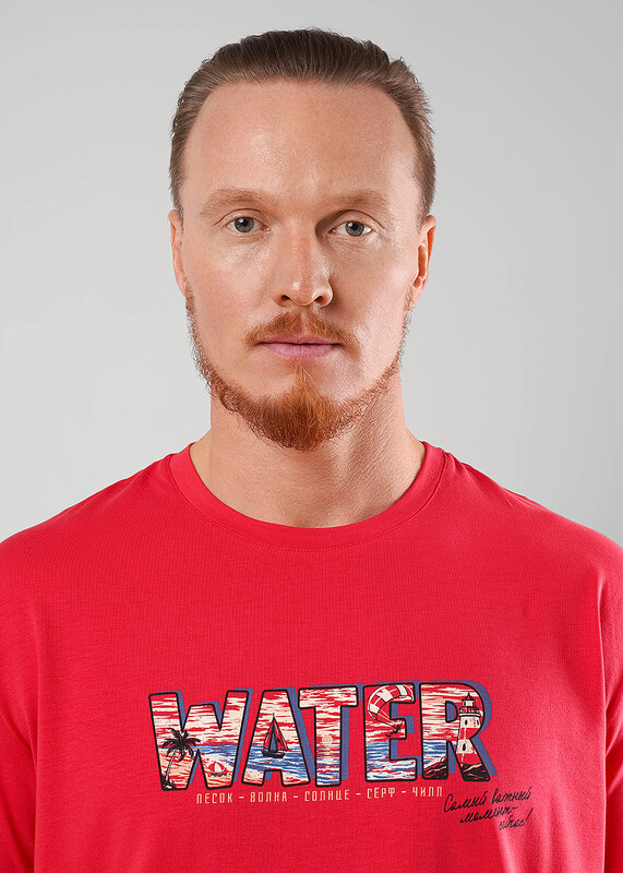 Набор мужской состоящий из футболки и шорт. Футболка из кулирной глади с эластаном, с коротким рукавом и дизайнерским принтом. Шорты из полотна - ""поплин"" на эластичном поясе и регулируемым шнуром, по бокам удобные карманы и имиджевая нашивка.