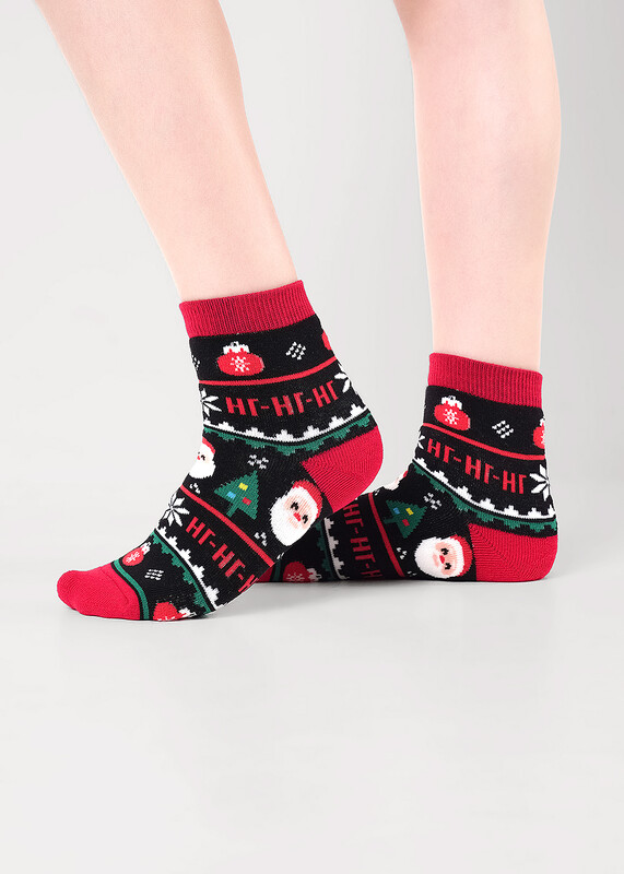 теплые плюшевые новогодние детские носки со скандинавским орнаментом и дед морозом