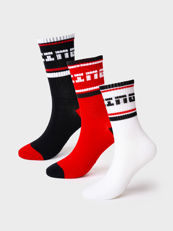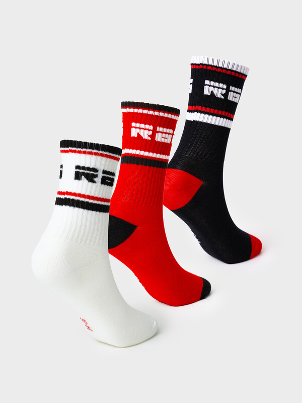 Набор носков для мальчика подростка, 3 пары в комплекте. Спортивная модель средней длины, выполненная в актуальном дизайне. Отличительной чертой служит яркая жаккардовая вставка с надписью "RACING" на контрастной цветной манжете. Изделие представлено в трёх вариантах: белом, чёрном и красном. Все варианты оснащены надёжной резинкой, которая не сдавливает ногу, и анатомической посадкой. Носки подойдут для повседневной носки, спортивных тренировок, а также как элемент стилизации. Отлично сочетаются с кроссовками и другой спортивной обувью.