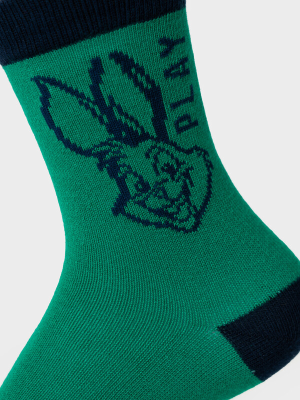 Набор из пяти пар детских носков для мальчика. В комплект входят модели с полосками, однотонные и с изображением зайчика. Удобная резинка не сдавливает ногу, а на стопе — аккуратная жаккардовая надпись с размером. Материал — мягкий хлопковый трикотаж.