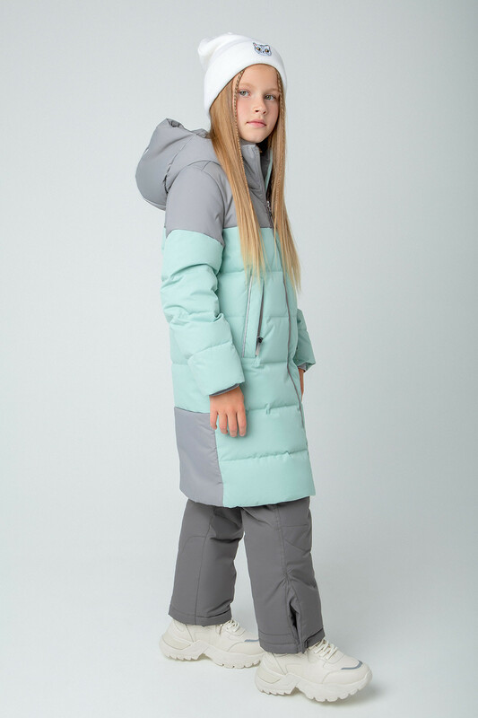 Пальто для девочки с натуральным утеплителем из гипоаллергенного гусиного пуха (70%) и пера (30%). Рекомендованный температурный режим - от -5° до -30°.