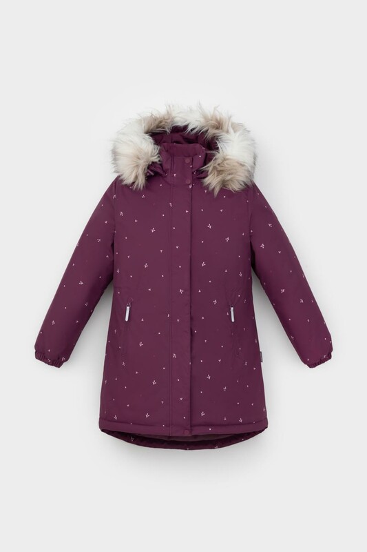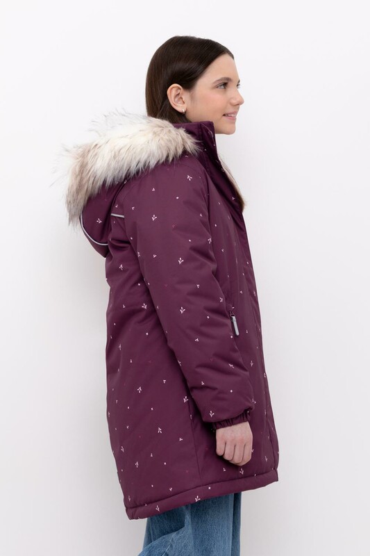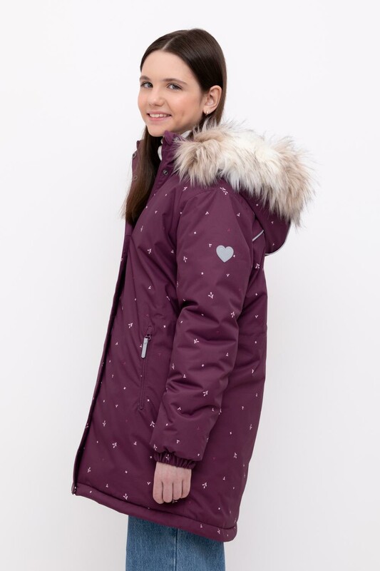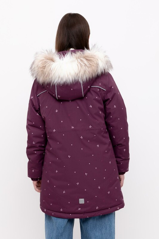 • Утяжка на капюшоне со стопперами • Отстегивающаяся опушка из искусственного меха на молнии