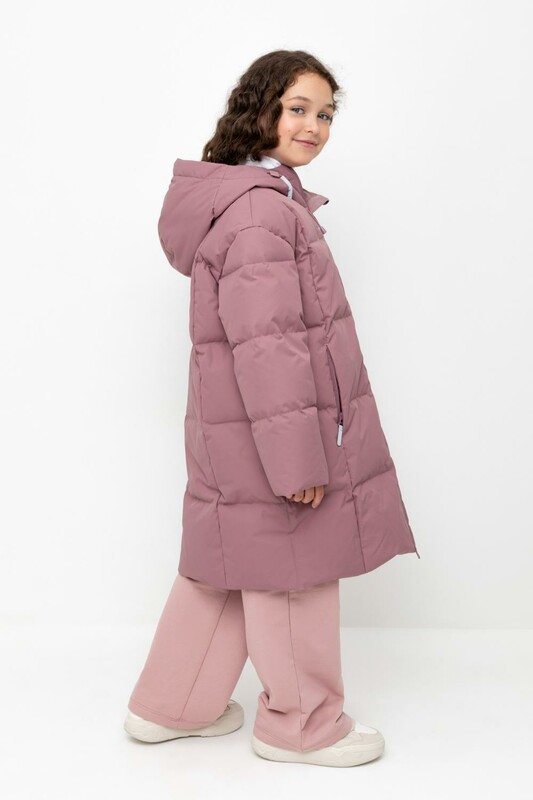 Пальто для девочки с натуральным утеплителем из гипоаллергенного гусиного пуха (70%) и пера (30%).